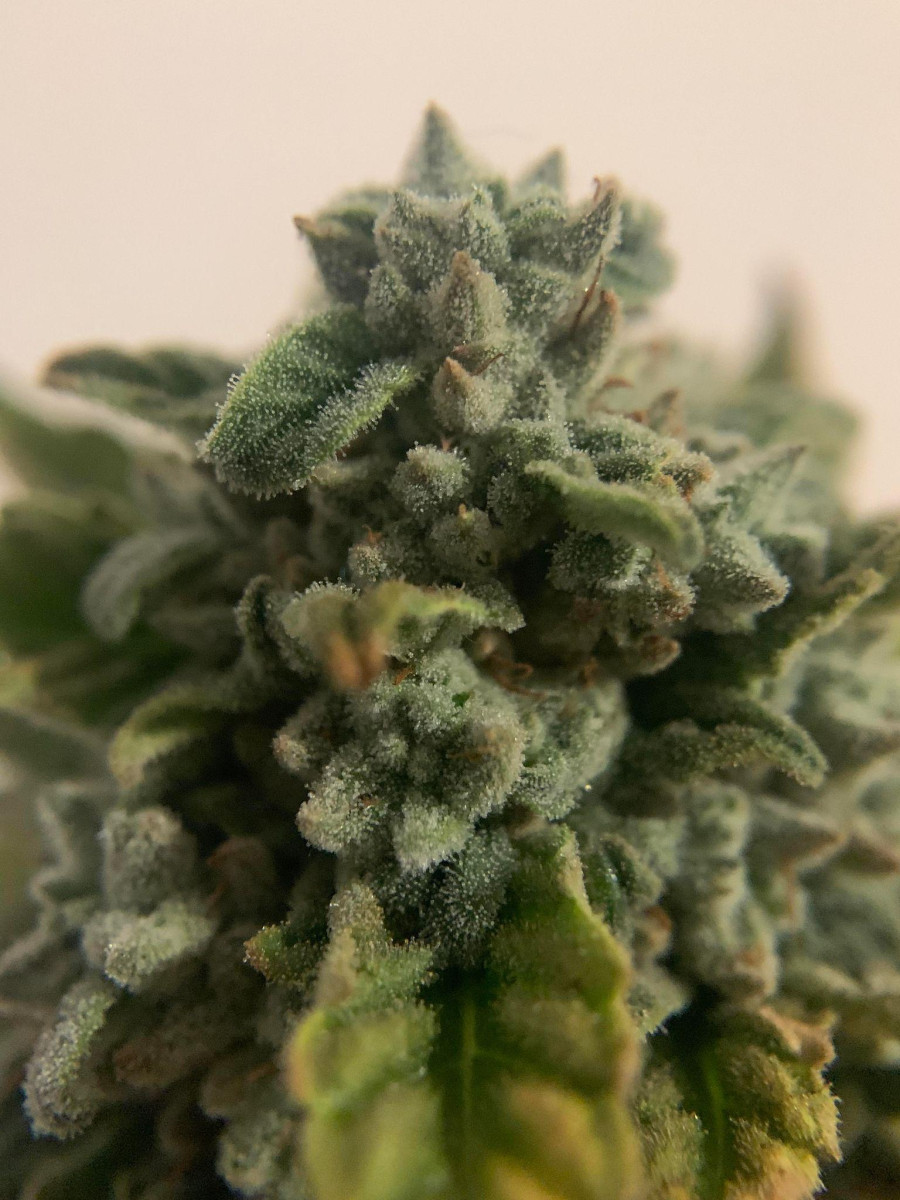 Шишки, тем не менее, очень плотные и покрытые трихомами, выглядят просто восхитительно.
