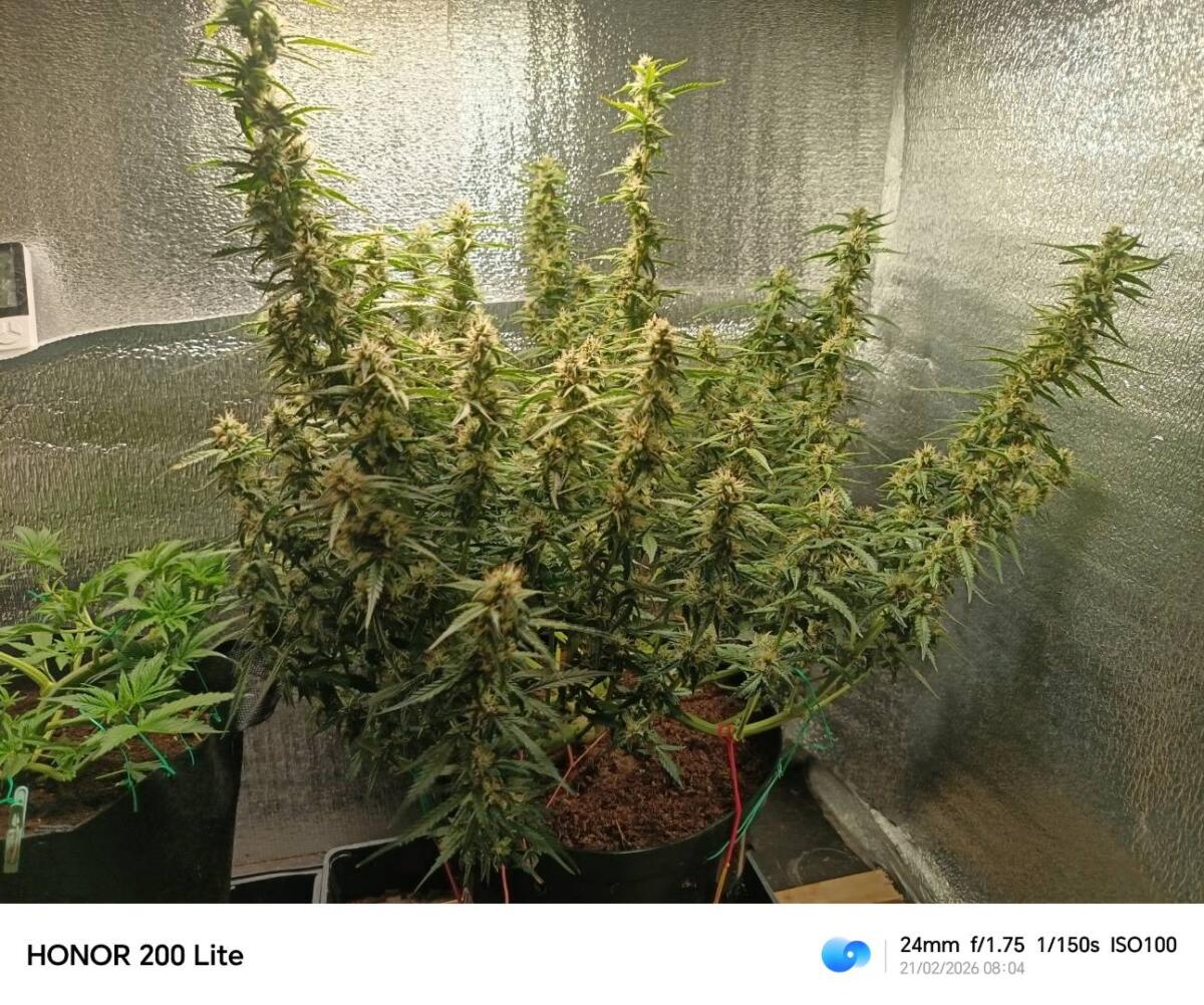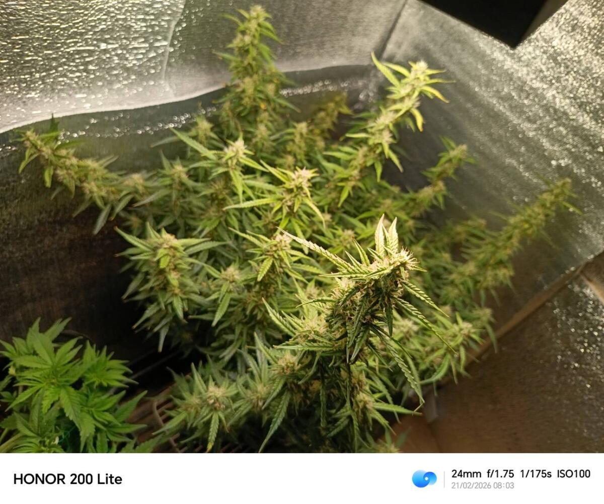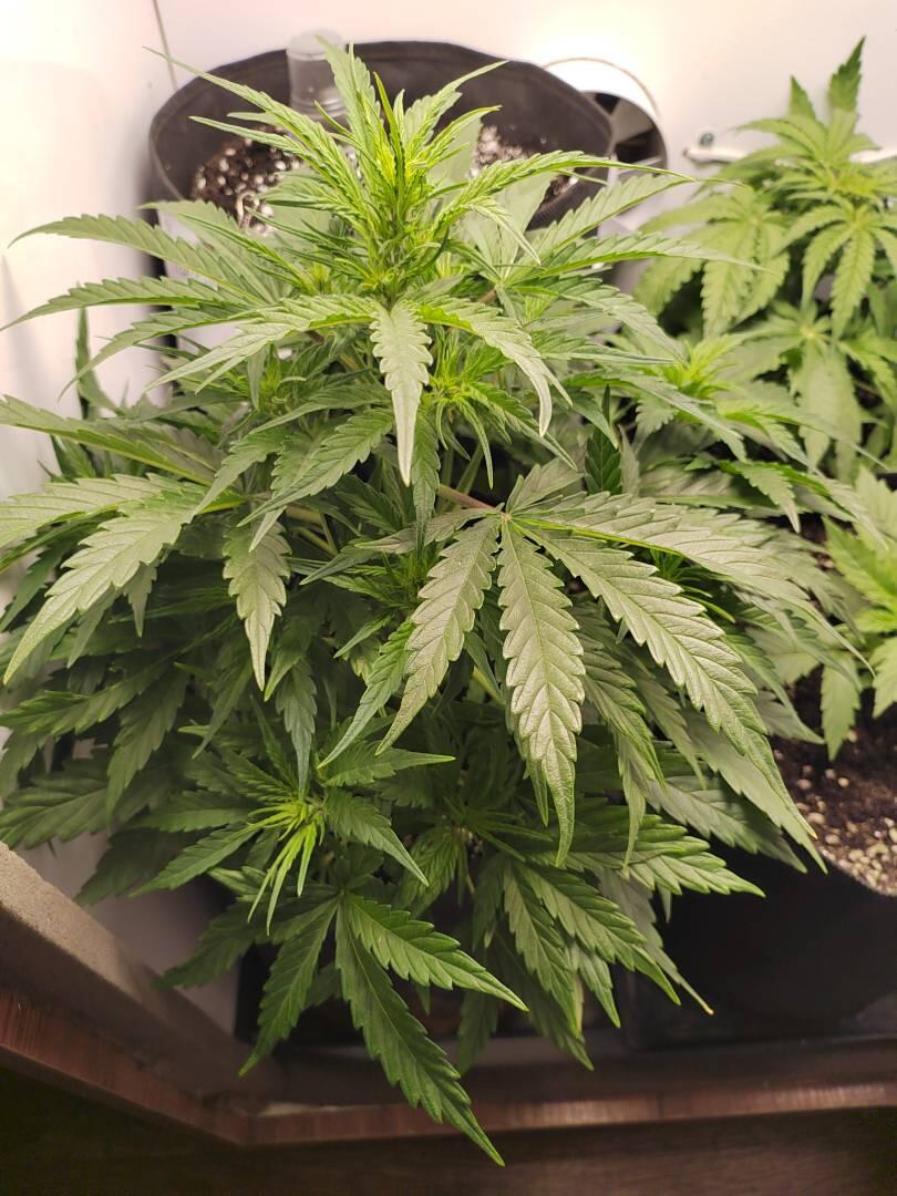 Кустику месяц от роду, выглядит как настоящая ёлочка на рождество.Главным достоинством,думаю, будет то что этот сорт не нуждается в дефолиации,куст сформировался сам правильно.( В отличие от бонусных " сумасшедших " ) Очень красиво переходит в цветение уже, звёздочки будущих кол...КРАСОТИЩА А НЕ СОРТ.Очень радует красивый куст.Хоть я совсем ничего не делал,ни подгибал,не срезал ни одного листа )