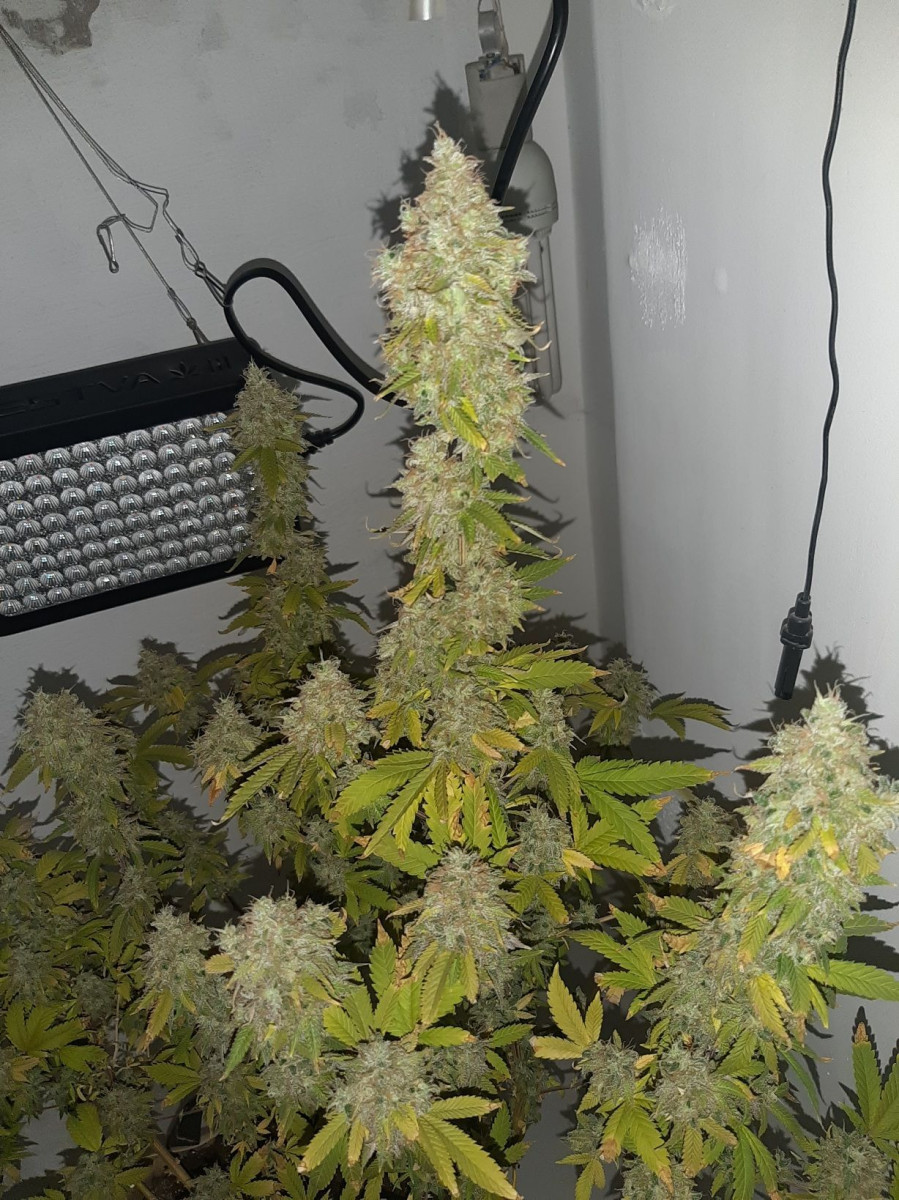 Развитие у сорта интенсивное, в 3 недели все растишки уже достигли по росту 20 см, а с 6 недели вообще выстрелили, как только я переключил таймер в режим 12/12. К 10 неделям рост прекратился и пошло наращивание шишек, а также бокс заполнился удивительным топливно-ягодным ароматом.