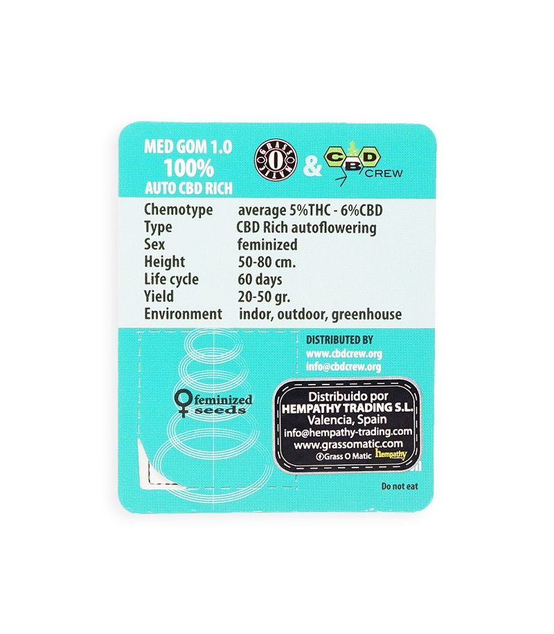 Семена сорта Med GOM 1.0 auto fem (Grass-O-Matic) Испания, Феминизированные, Автоцветущие, ТГК-5