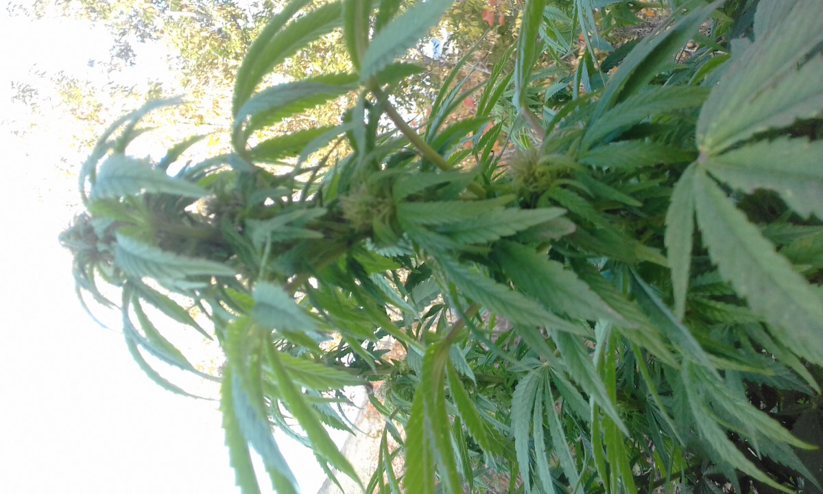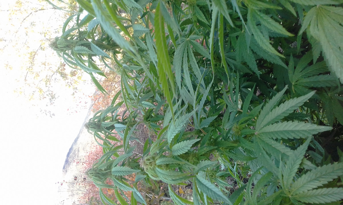 14.08.19. Переходит на цвет. Активное появление прицветов. Высота 1 метр. Диаметр примерно тоже метр. Очень пушистый после двух фим обрезок. (Обрезал чтобы сдержать рост. Все прошло по плану). Харвест думаю вторая половина октября. На солнце видно как блестят трихомы на листьях. На автиках такого не наблюдается. Думаю шишки будут огонь. Лиш бы дала погода. Напомню: аут 51 широта.