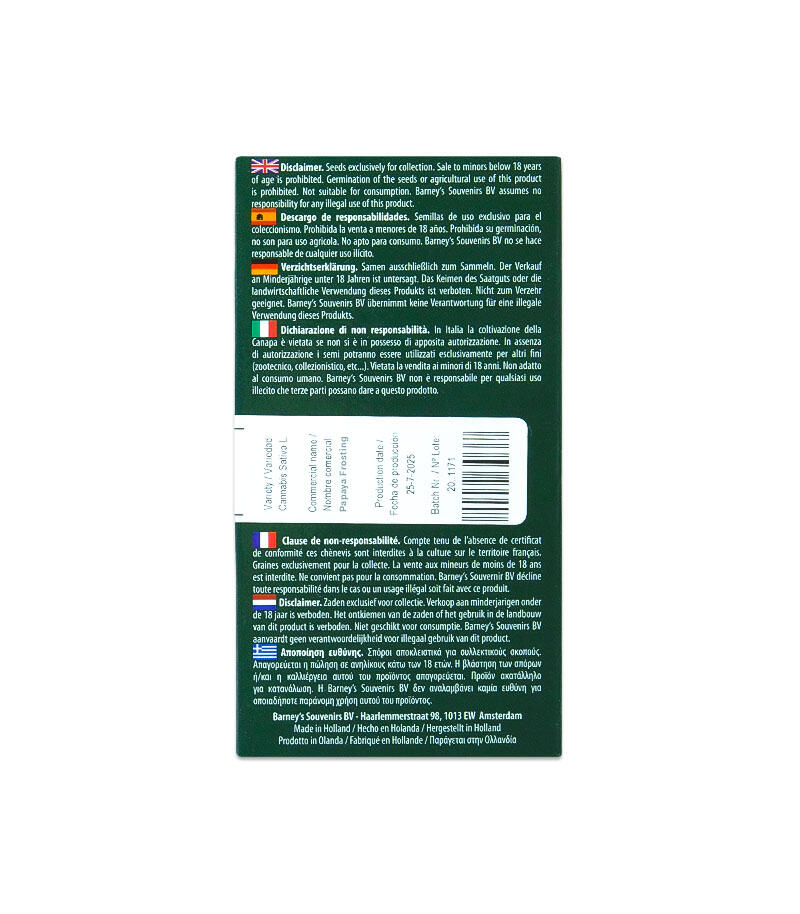 Семена сорта Papaya Frosting fem (Barney's Farm) Нидерланды, Феминизированные, Фотопериодные, ТГК-28