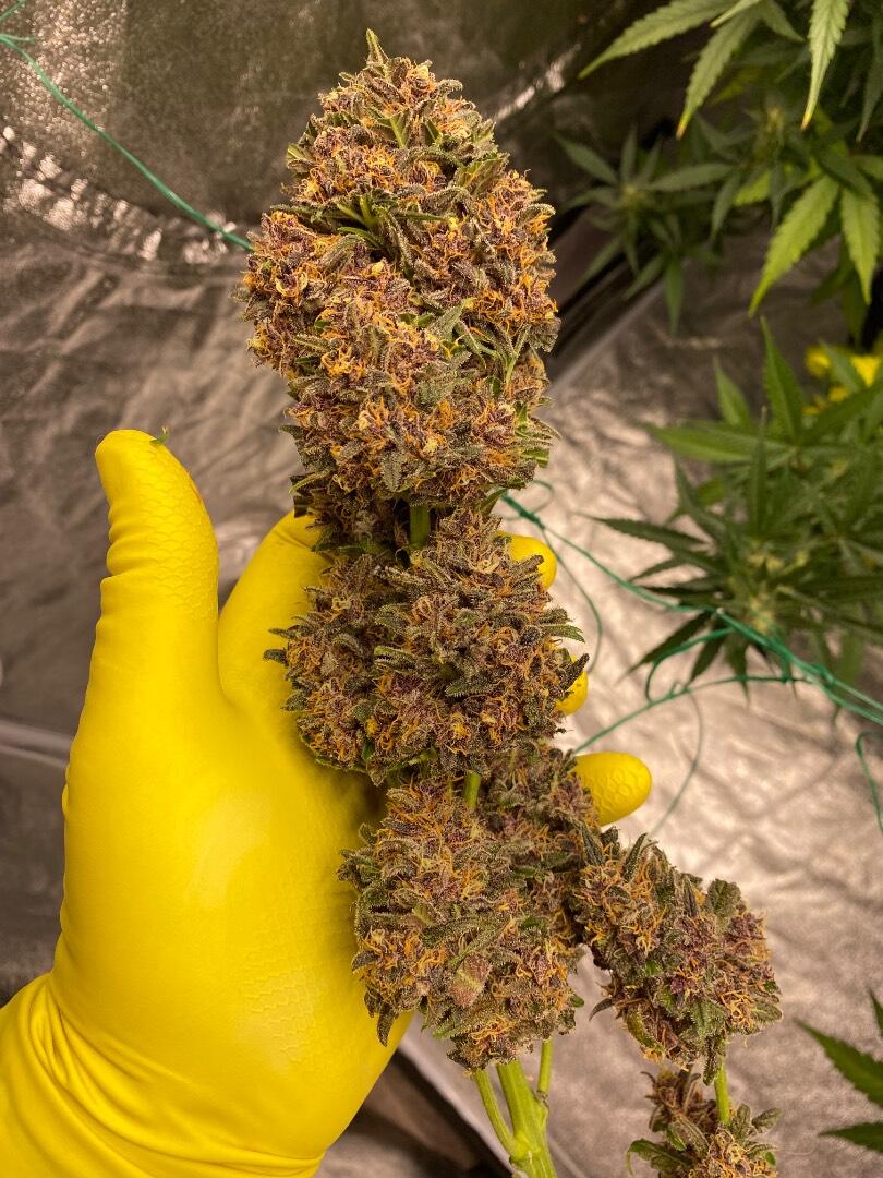 Фиолетовый Лимонад было легко выращивать, и его можно было быстро приготовить. Цветение началось рано, поэтому растение не выросло слишком большим. Запах ягодный с небольшой ноткой лайма. Имеет странную структуру шишек, но по большей части верхушки были довольно плотными. Оглядываясь назад, мне хотелось срезать ее немного раньше, но в итоге все сработало как надо. Куст хорошо справился с легким графиком кормления. Она имеет приятный вкус дает приятный расслабляющий кайф!