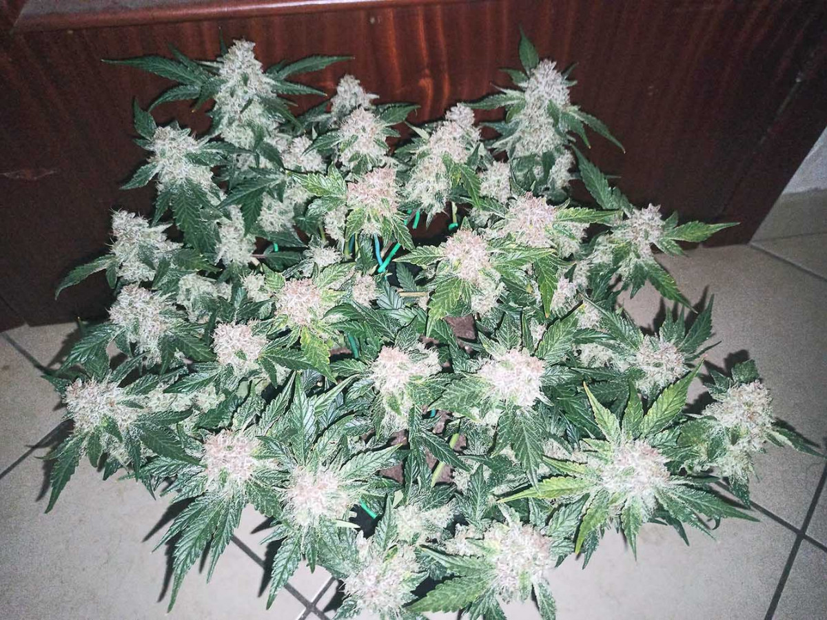 я растил одновременно 3 куста в индоре и 2 куста в ауте. хорошо хоть фильтр был новый и производительный иначе его запахи проникли бы сквозь стены к соседям. хорошо что 2 аутдорных куста я разместил в глуши, куда сам с трудом пробирался в ночное время. порадовало что сорт может расти сам по себе, его лишь иногда нужно приходить проверять.стремно было везти урожай потом, воняло хоть я его как следует упаковал.на просушку домой не повез, у бабушки оставил в подвале на просушку.