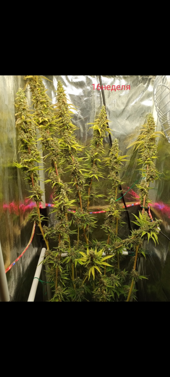 Очень красивые соцветия - темно бордово/фиолетовый цвет прямо сразу, с начала цветения, от температуры не зависит ! Легко перенесла лст, удобрения ест не стесняясь. Отцвела в индоре за 58 дней с момента появления одуванов (предцвет 10 дней - считаю). Эффект - расслабленный, но очень бодрый. Спать не хочется абсолютно, хорошо совмещать с работой. Интересная, но не самая сильная сатива, можно курить целый день. Не вернусь только потому что на вкус - не моё, другу понравилась, будет поднимать её.
