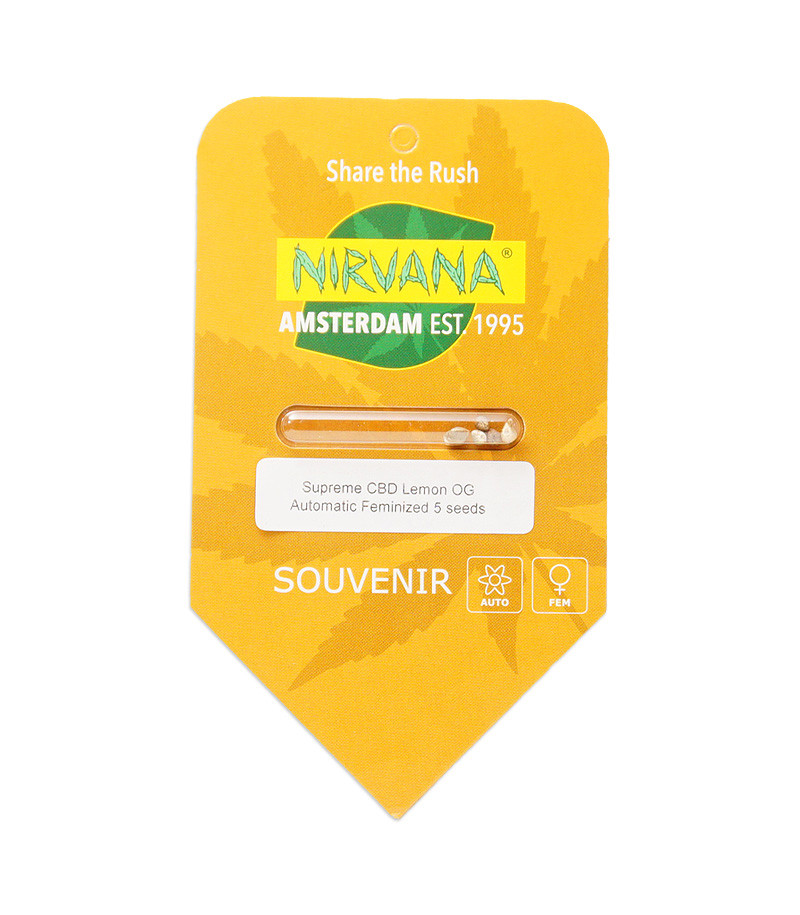 Семена сорта Supreme CBD Lemon OG Automatic fem (Nirvana Seeds) Нидерланды, Феминизированные, Автоцветущие, КБД-5.8