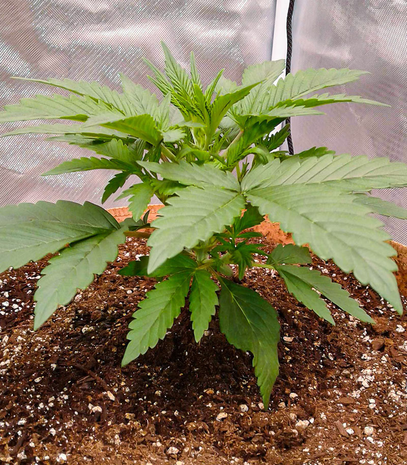 Приятным бонусом для партизан станет небольшой рост кустов. Чаще всего их высота составляет всего 70-100 см, и только в открытом грунте при обильной подкормке и соответствующей теплой солнечной погоде размер может достигать 110-120 см. Для маскировки подойдут любые заросли кустарника или аккуратные густые грядки с садовыми культурами. В помещении растения можно выращивать в небольших гроубоксах, а при нехватке места есть возможность даже пройти весь цикл на балконе или подоконнике.