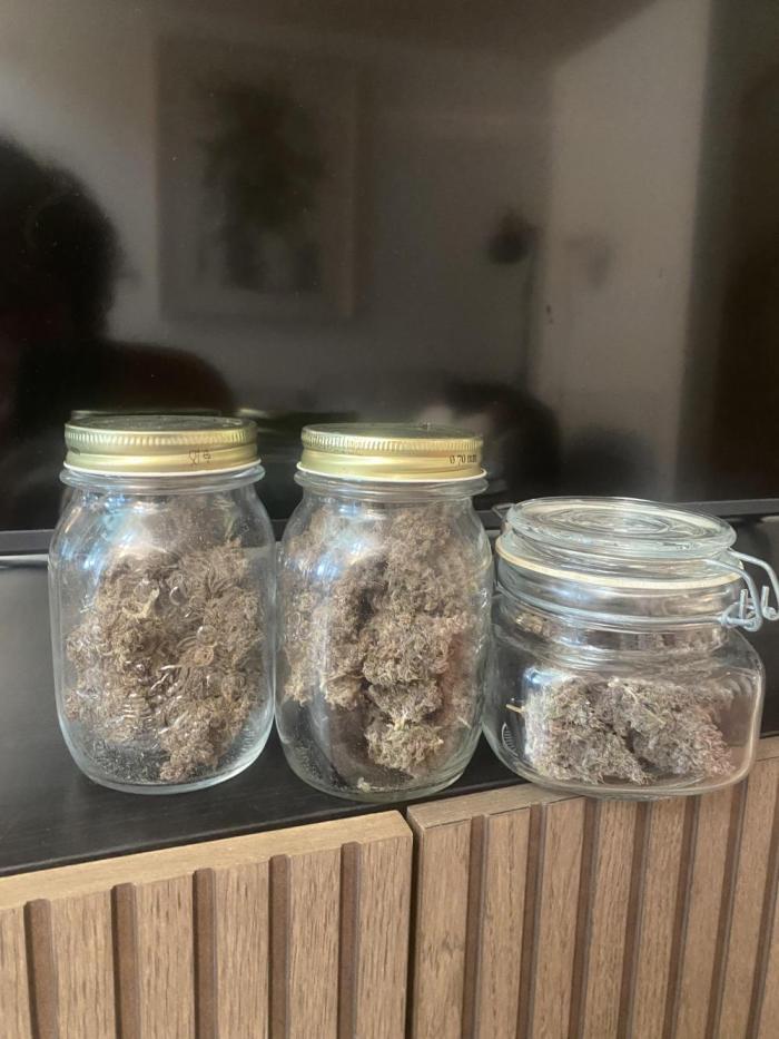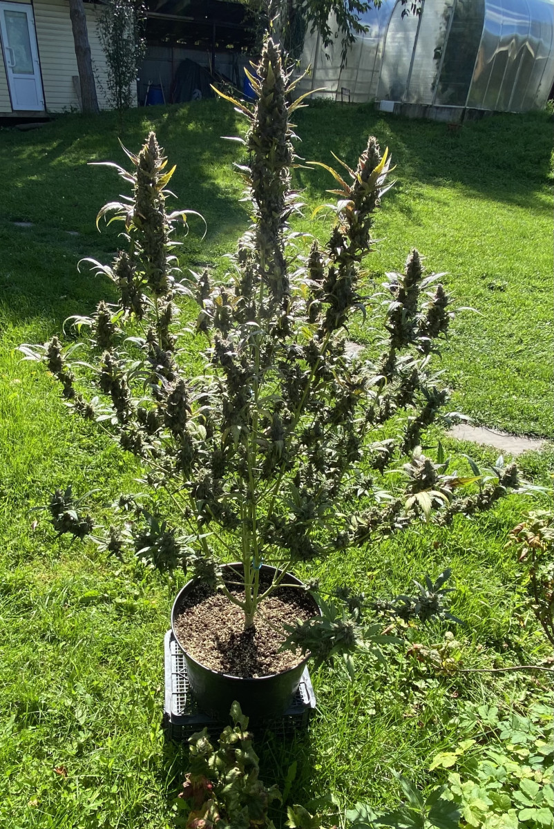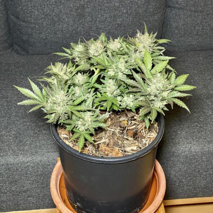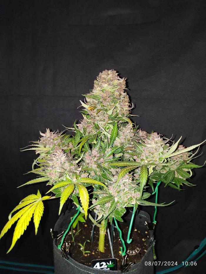 Брал 1 семечко. Проклюнулось быстро, без каких либо проблем. Из тренировок делал только топинг листьев, на макушке. Что бы боковые побеги догнали центральную колу. В итоге куст вымахал 110см! Запах практически отсутствует. Только если потрогать сами шишки, руки будут пахнуть. Трихомы практически отсутствовали на сахарных листьях, а скми шишки хорошо покрыты. Подкормку давал каждый третий полив, с учётом того, что поливать приходилось почти каждый день по 4л. Горшок 20л. Я не рассчитывал вырастить такой большой куст. Ну как уж вырос)) проблем не возникало никаких. Сами шишки зелёные а вот листья в последнее две недели стали фиолетовые. Простояла 85дней, хотя заявлено производителем 56-63 дня. Смотрел по состоянию трихом, дождался пока янтарные займут 30% от молочных. Очень мягкая во время дегустации. Вкуса я ягодного с печеньем не почувствовал. К слову сказать, мне ещё не доводилось испробовать хоть какой-то сорт со вкусом. У все примерно одно и то же. Разница составляет только в лёгкости и мягкости употребления. Наверное если сделать концентрат, возможно что-то и будет. В целом сорт не плохой и легко гровится. Общий вес готового продукта 142 гр. шишки хорошо обработаны и подстрижены. В целом смело могу посоветовать к выражению! Стоут весьма ощутимый, но мягкий и приятный. Не горлодёрка. В очередной раз благодарю Семяныч,за предоставленную возможность вырастить такое растение!!