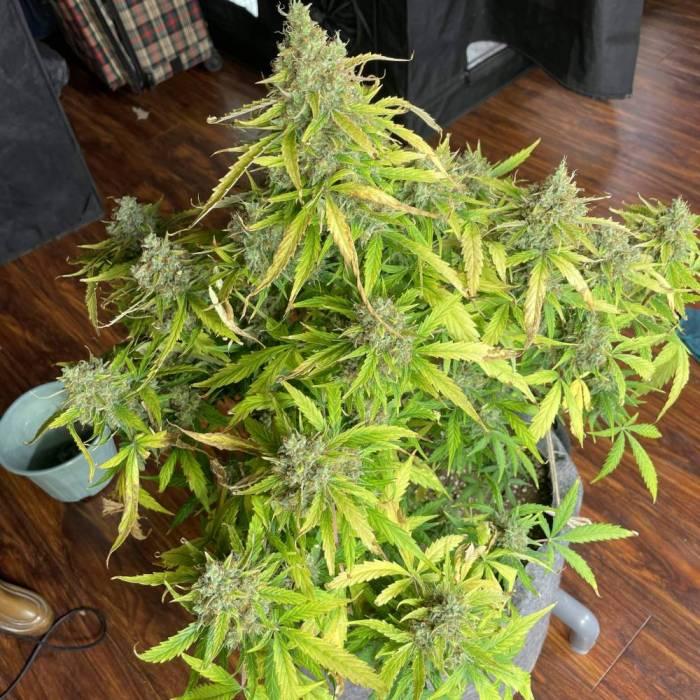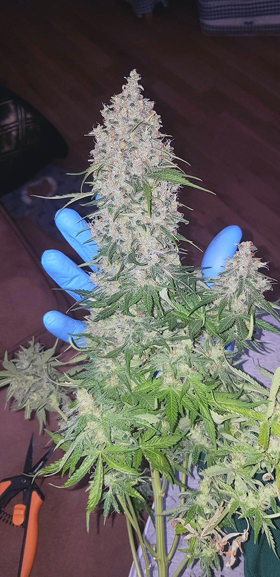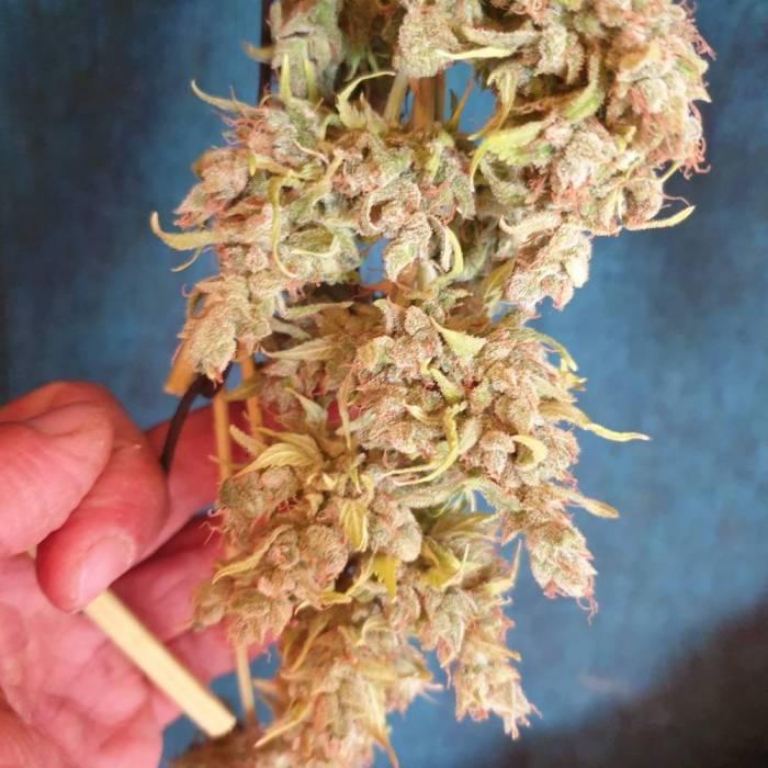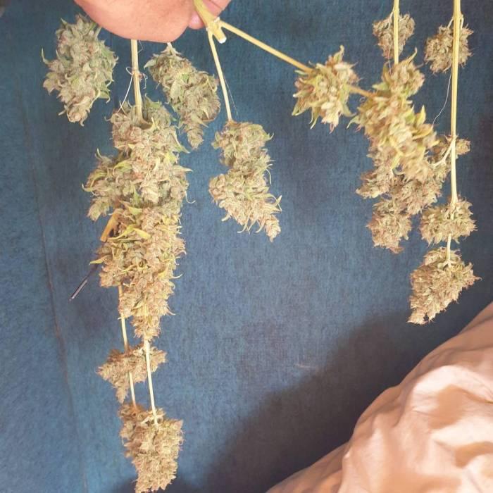 Меня удивило, насколько твердыми получились шишки. Это потрясающий фенотип. Растение пахнет сладкой клубникой и яблоком с нотками сосны. Похоже, это самое крутое растение, которое я выращивал на данный момент. Примерно 90 дней от семени занял весь гров, так что довольно быстро. Не могу дождаться конечного результата. Собрал урожай, потому что в последние дождливые дни очень мелкие шишки начали подгнивать. Мне повезло, что я сразу это заметил.