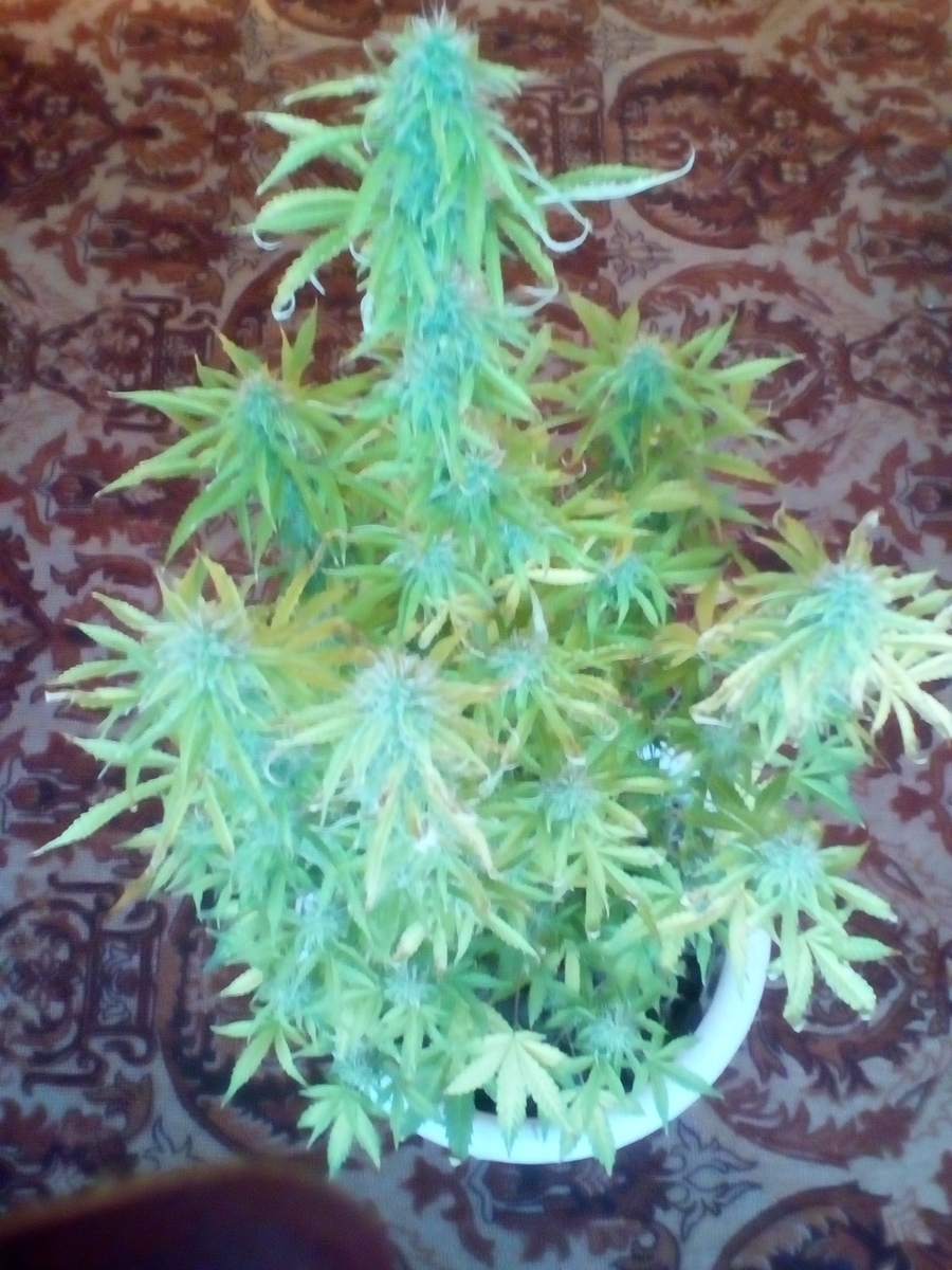 всем мир!моей девочке моей на фото 56 дней.на пробу срезал не в мясо конечно убивает но сознания меняет как надо но буду еще пару недель держать.свет днат250 режим 20;4 на веге зольной водой поливал на цвете обычной удоброй из цветочного магаза сейчас простой водой за две недели до харва. семяныч ты действительно хорошим делом занимаешься от души тебе и процветания