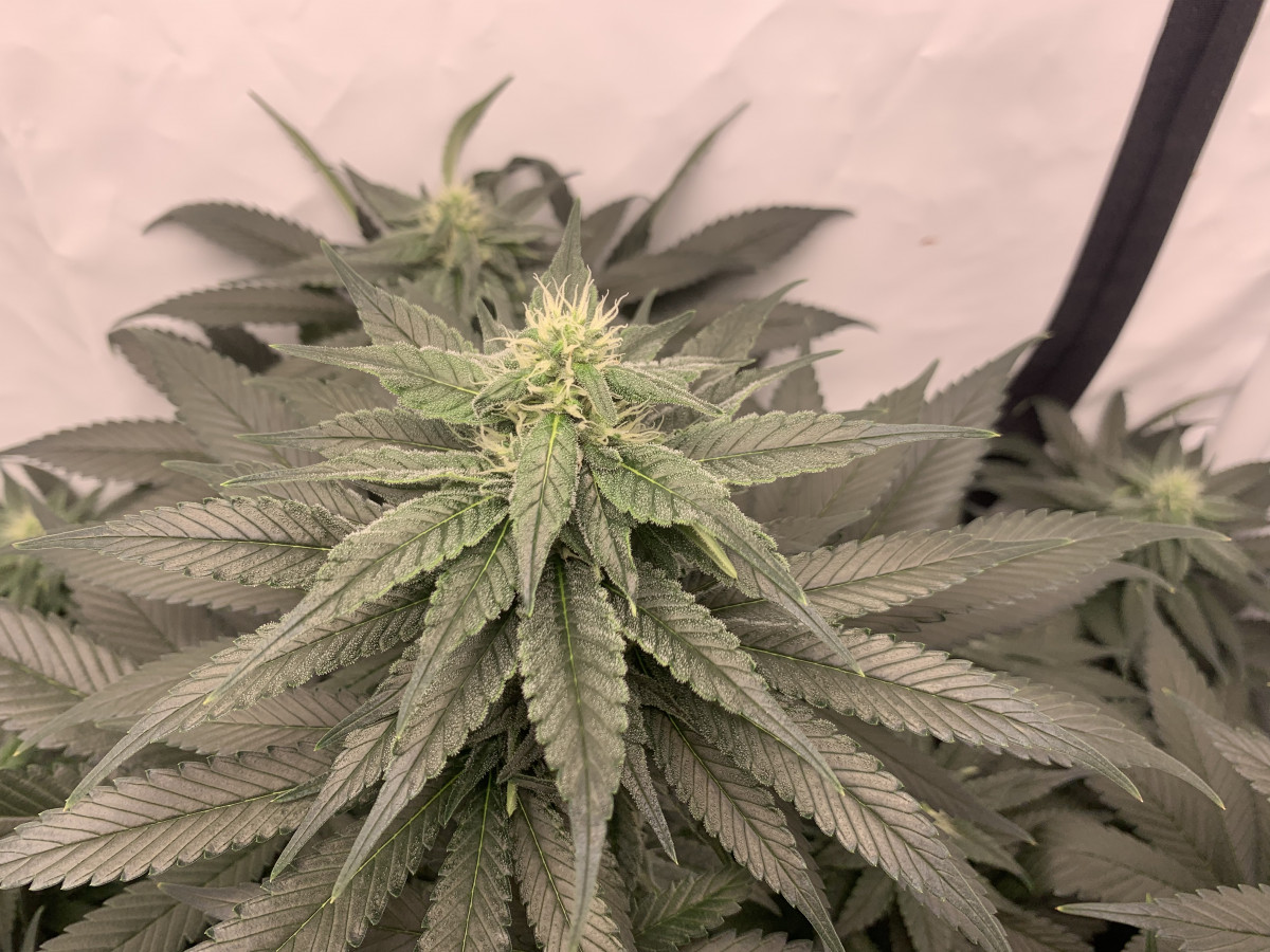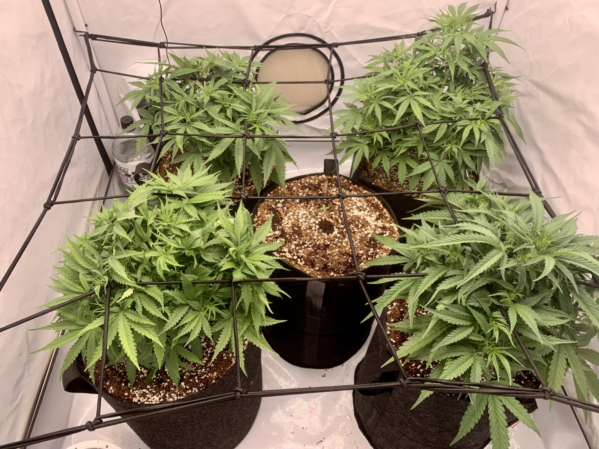 Сильно кустятся, дефолиацию не делаю уже, всё равно отрастают, четвёртый куст только недавно зацвёл, возможно, задавили его остальные, места мало четырём в метровой палатке
