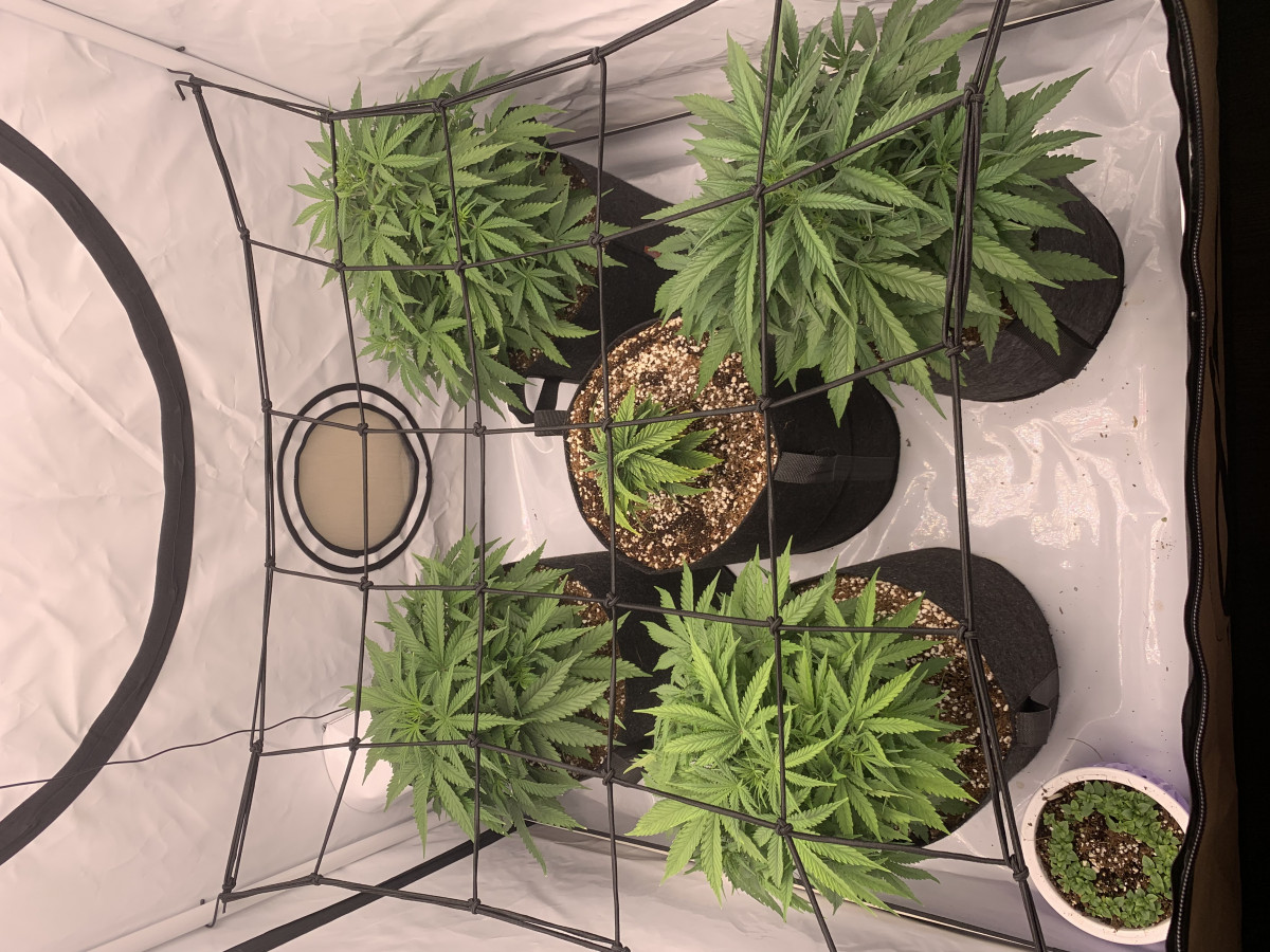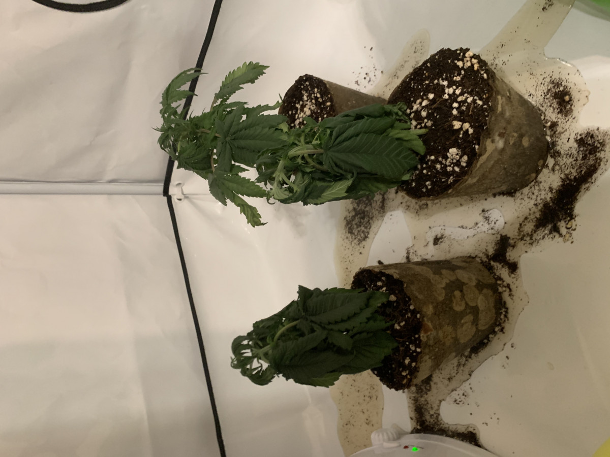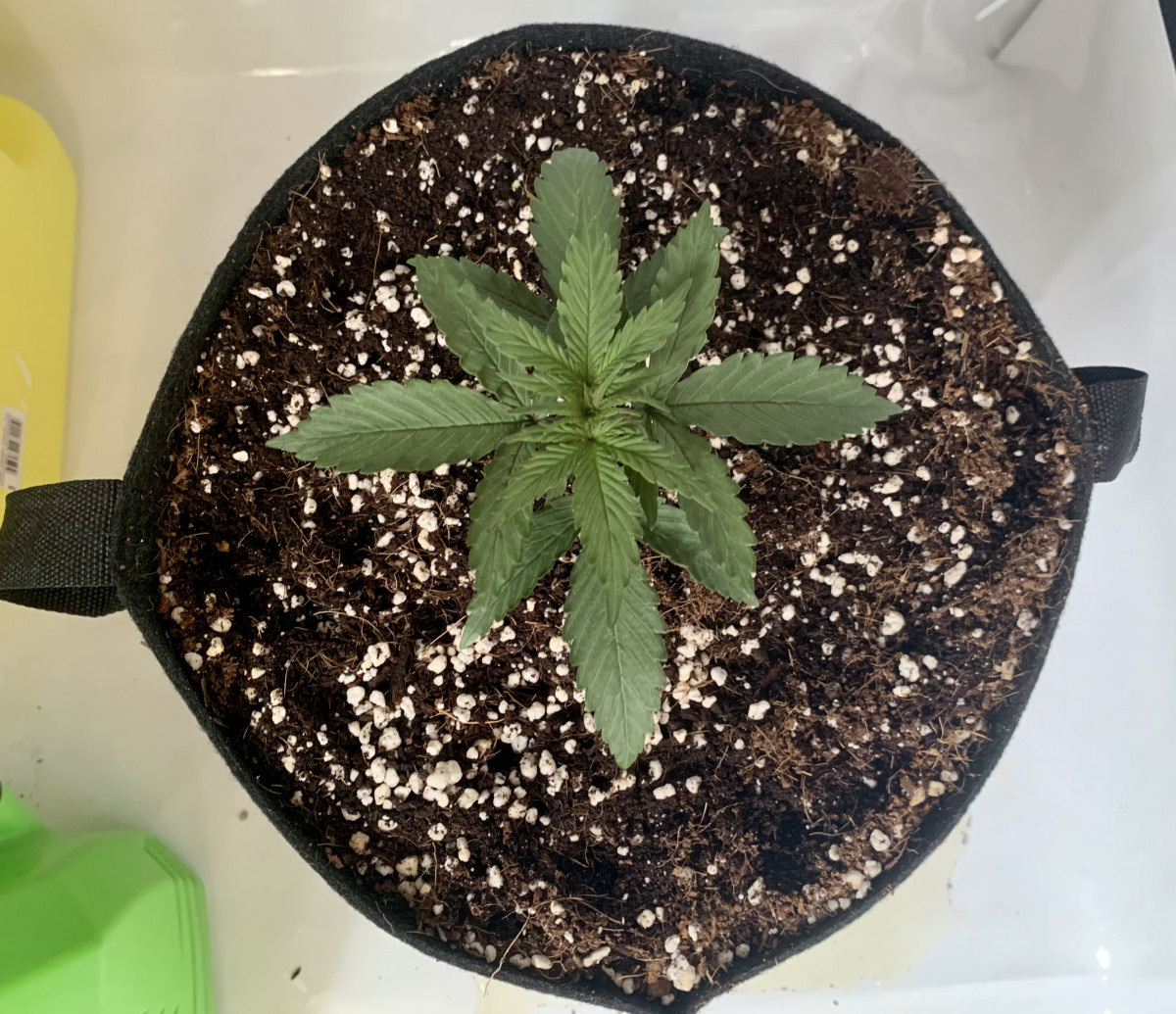 Посадил сразу в большой горшок, в котором пару недель поливал карлика от Fust Buds Cookies auto ( одна из пяти тяжело прорастала, я ее выдернуть решил), в итоге Ph был нарушен и пара нижних листиков это показала, я их удалил, пролил водой с добавлением Pure Zim от Plagron . А четыре оставшиеся Cookies зацвели.