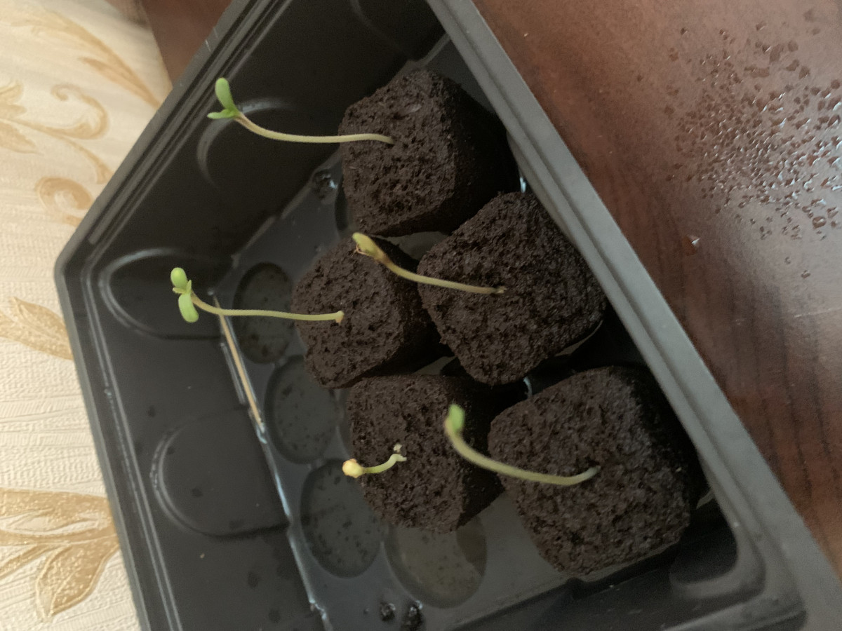 Все пять проросли, один с запозданием, помогал каску снять. Двоих завтра отсажу в другую палатку.
