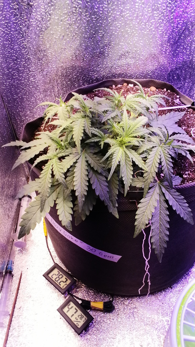 Набирает хорошо ровномерно, имеется ввиду и ответвления бутоны со стеблями и листья. Может показаться долго. Зато полностью развивается! Верх ещё этаж наберёт нижнюю листву убиру и ещё месячишко растягивать буду. Стигмы есть, сегодня ровно 30 Днем ему. Мешок 10л, Земля Роза-Лимон с Перлитом удобрения БиоБизз от корневина да топ макса. Листья толстые, но несамые большие, зато тяжёлые, смола появляется на стигмах.