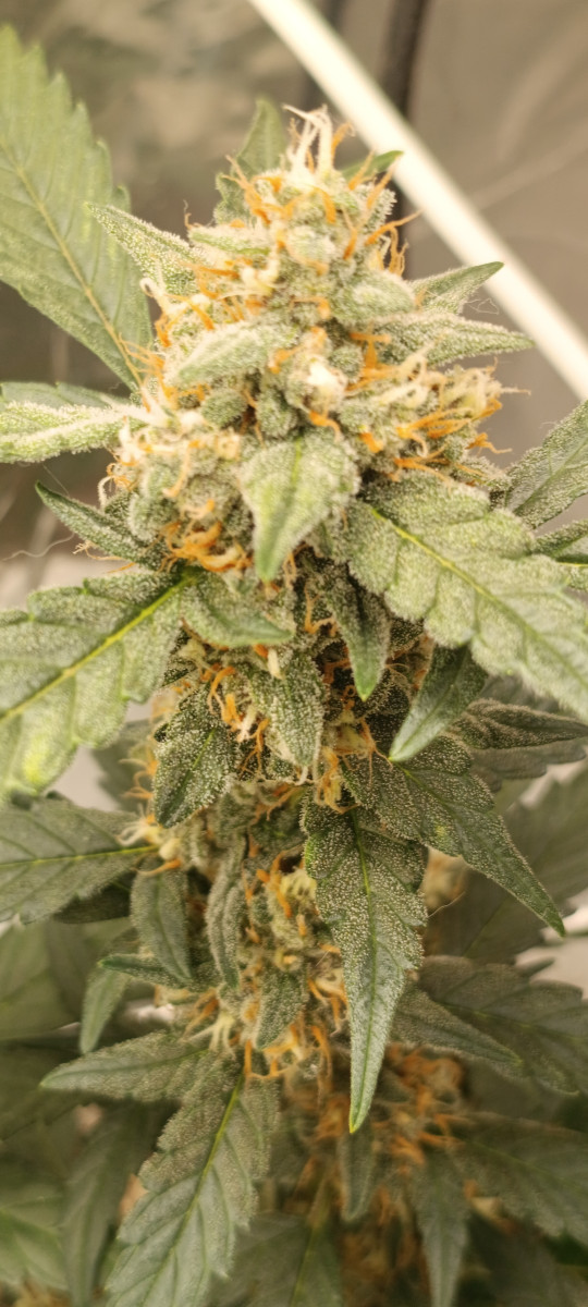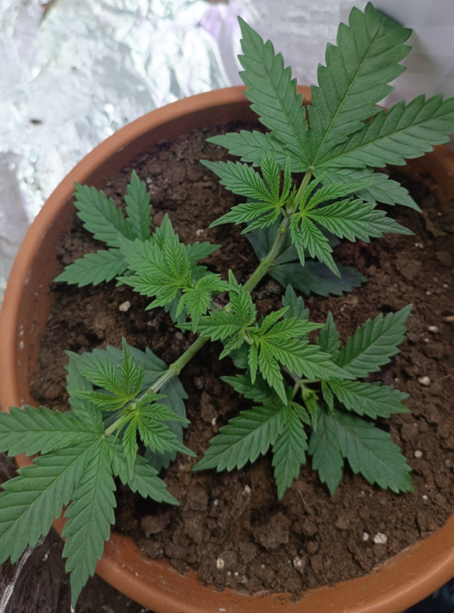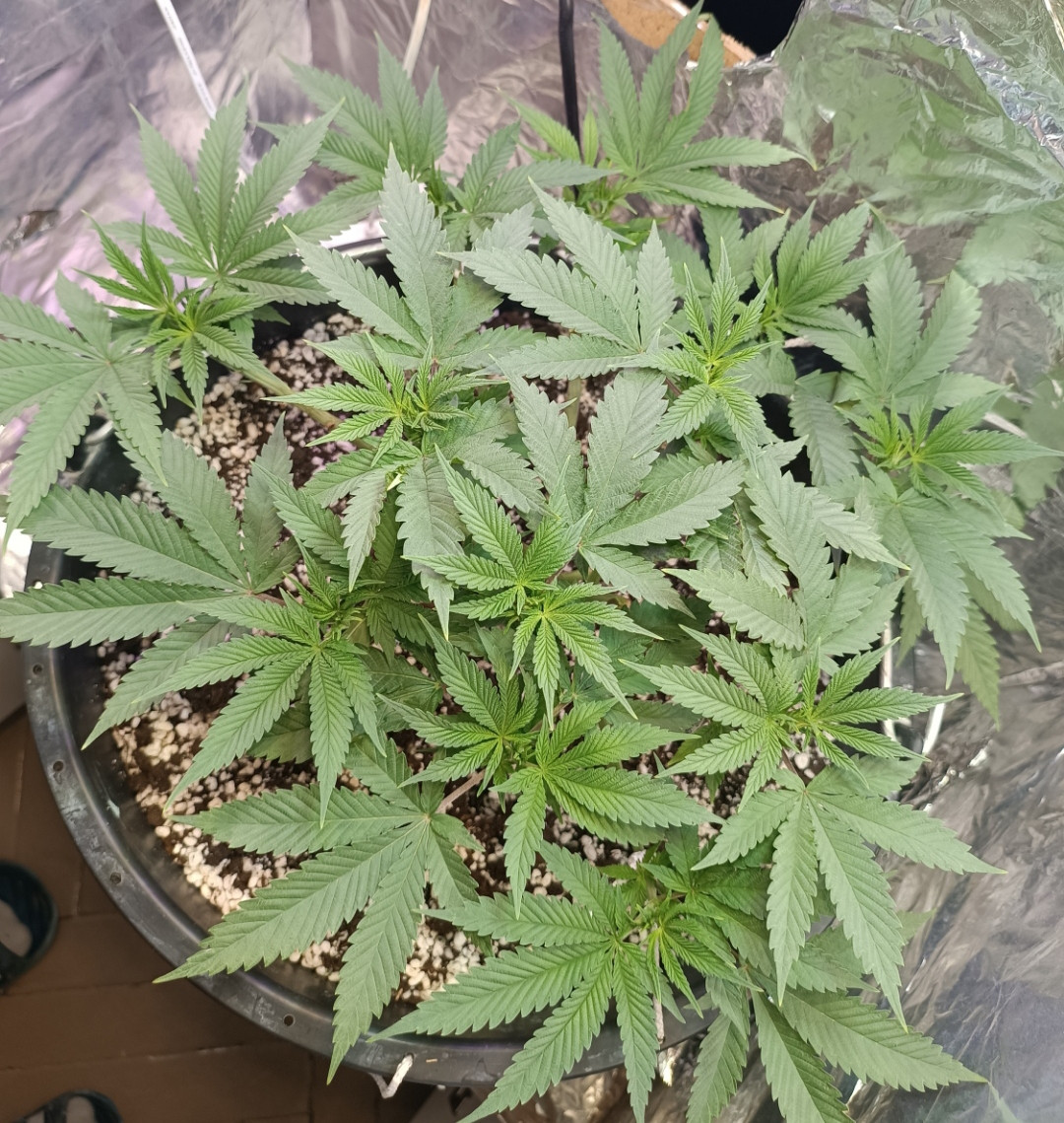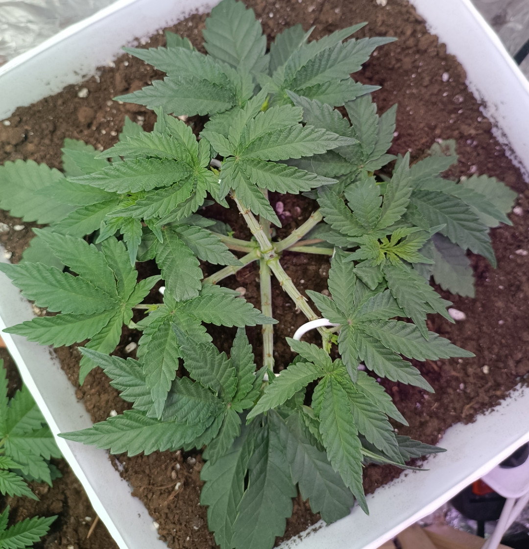 Сломал верхушку когда гнул, долго восстанавливался, но живой здоровый и уже листва прет. Свет 20/4, обычные лампочки с магаза 100вт, только переставляю иногда 6400-4000-2700к. Горшок 20л земля обычная перлит. Удобрения biobizz (grow, bloom и topmax). Вода из под крана, ph никогда не мерил.